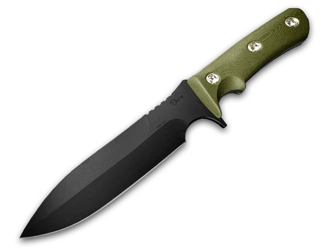 Is a pure tactical use knife. The design, handle and sheath are all meant to hug close to the body to avoid excessive snagging in heavy vegetation. The dual grind is particularly suited for piercing and deep choils accommodate both standard and fully choked grips for heavy and finesse type applications. The Jungle Fighter mounts in a top grain leather premium quality sheath in a drop style for belt or harness carry